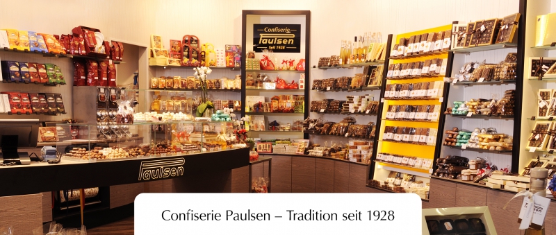 Ihr seid auf der Suche nach Leckereien? Confiserie Paulsen steht seit über 90 Jahren für Hochgenuss aus dem Herzen Hamburgs. Ob handgeschöpfte Schokolade, handgefertigte Pralinen und Trüffel, Marzipan oder Süßigkeiten aus eigener Herstellung oder Produkte die auf dem gesamten Globus zuhause sind.